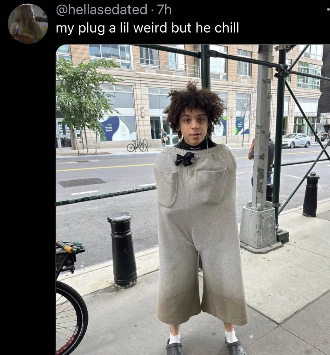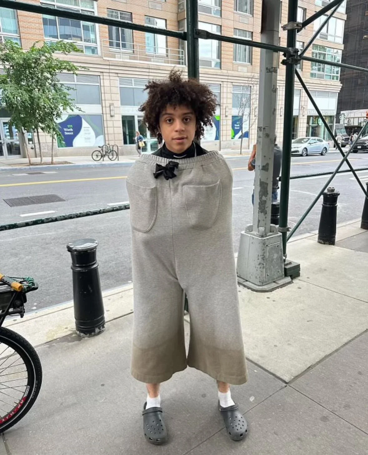 We did a casual fitting, putting him in a pair of YORI's wide-leg grey sweatpants, and wandered through the city shooting photos in a natural, unforced way. One photo—Xavier with the sweatpants tossed over his shoulder—stopped us in our tracks. It made us laugh out loud in the moment, and we instantly knew it was something special.